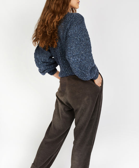 Thistle Cable Knit Sleeves Cardigan Dark Denim