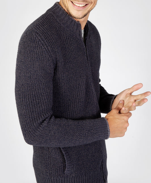 Aran Textured Zipped Cardigan Graphite