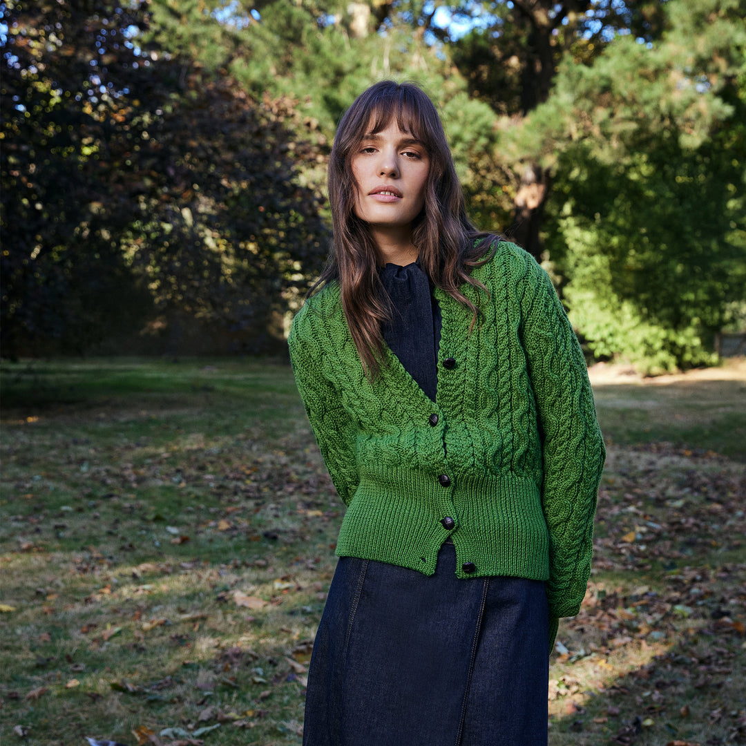 Fearnóg Aran Crew Neck Sweater Evergreen