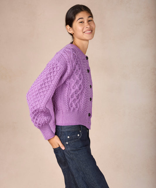 Clover Cropped Aran Cardigan Lilac Marl