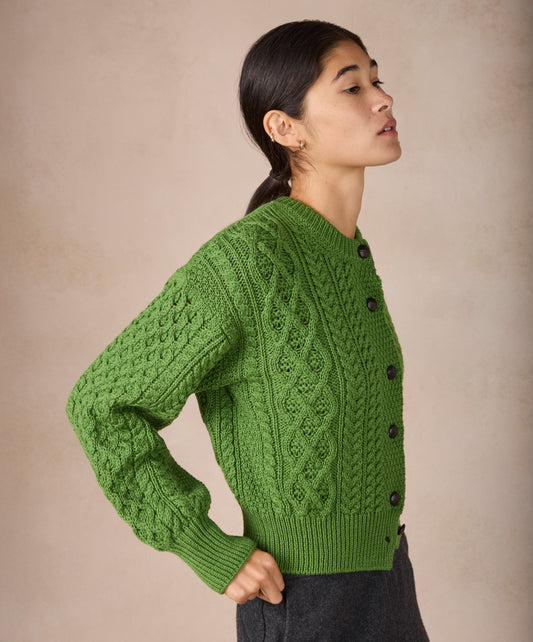 Clover Cropped Aran Cardigan Moss