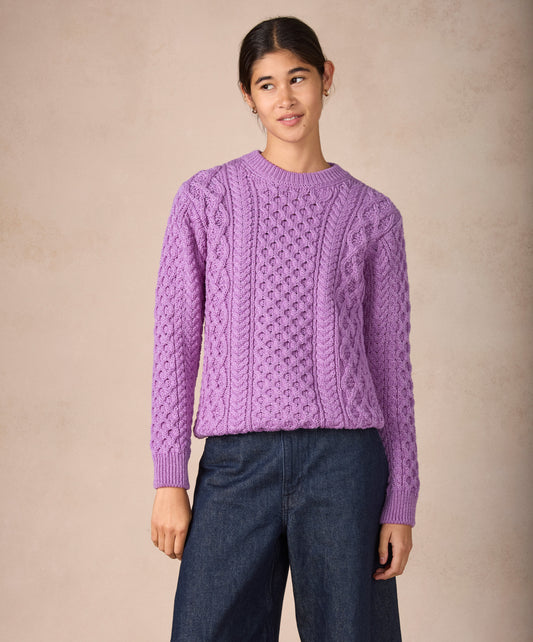 Blasket Honeycomb Stitch Womens Aran Sweater Lilac Marl