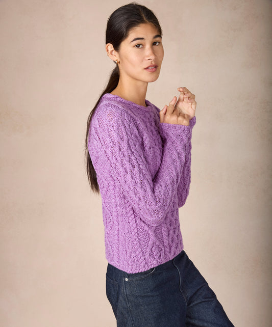 Lambay Lattice Cable Aran Sweater Lilac Marl