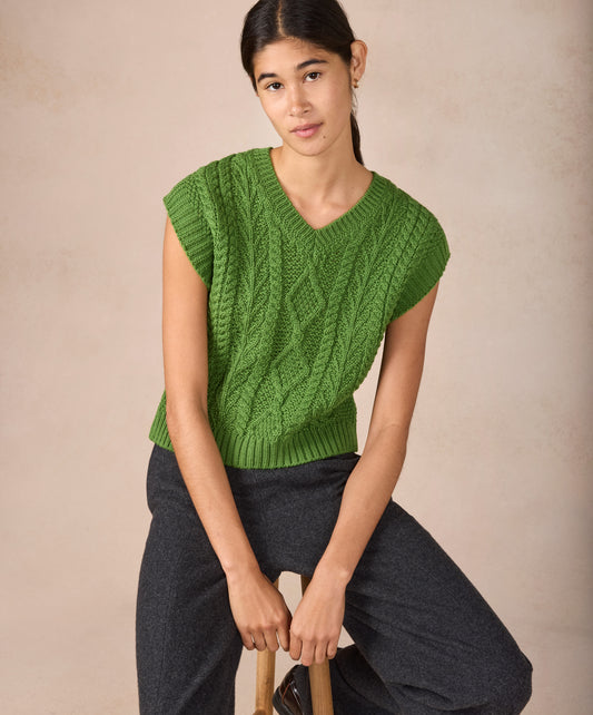 Blasket Honeycomb Stitch Womens Aran Sweater Moss