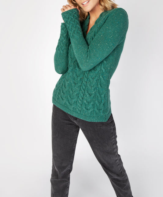 Blasket Honeycomb Stitch Womens Aran Sweater Green Marl