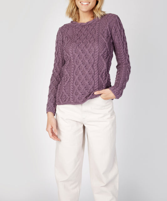 Lambay Lattice Cable Aran Sweater Warm Lavender
