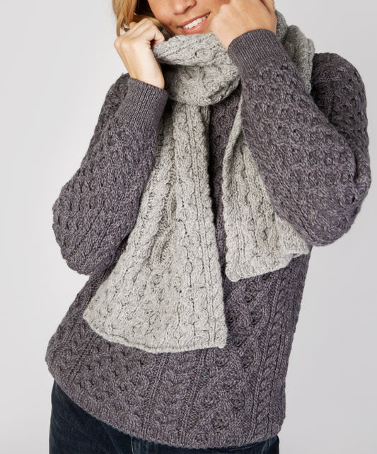 Einknöpfiger Cardigan Adare mit Zopfmuster, Hellgrau