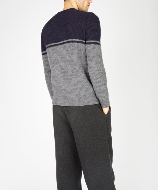 Colour Block Crew Neck Shadow Marl & Midnight Blue
