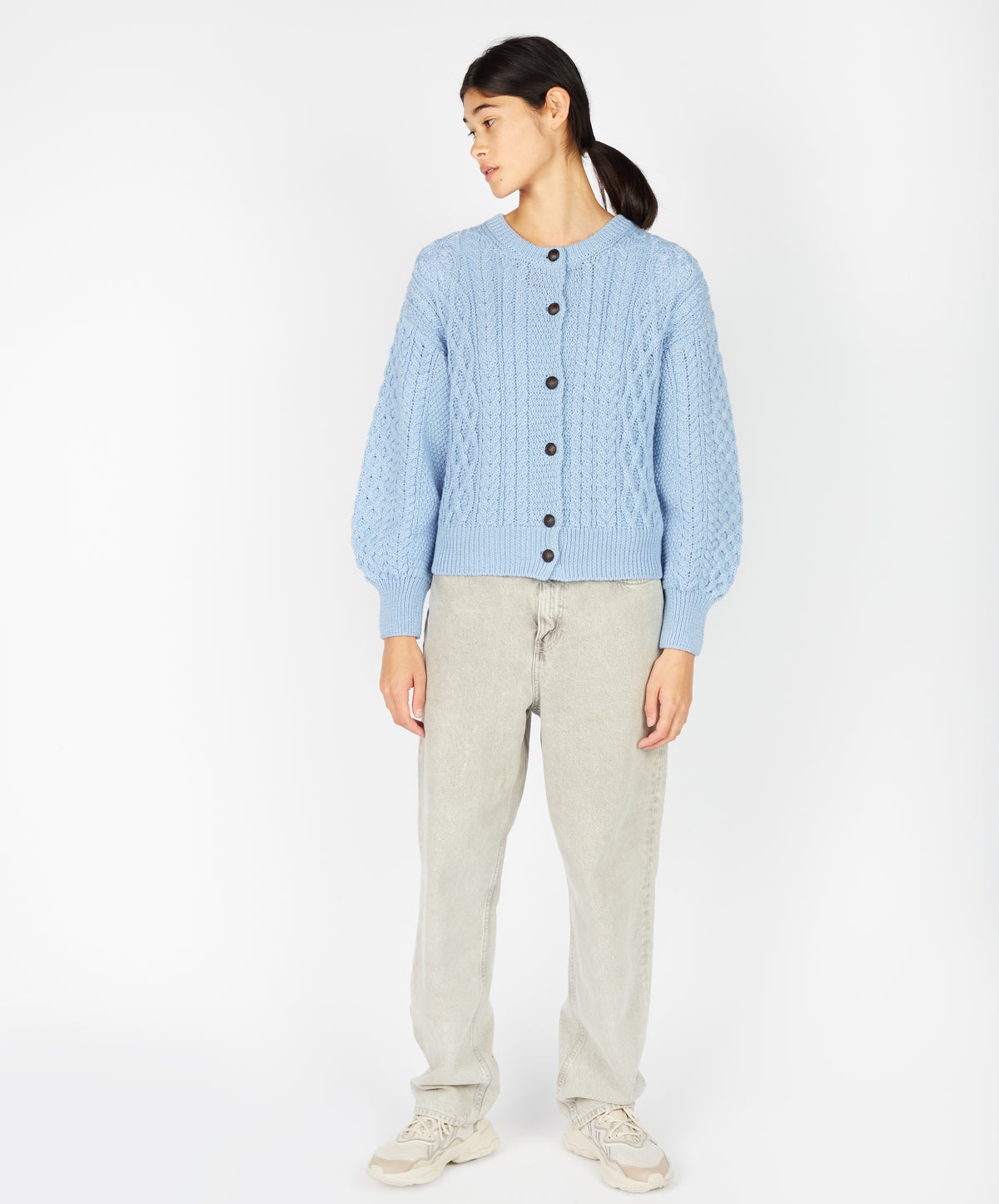 Honeysuckle Cropped Aran Sweater Morning Sky