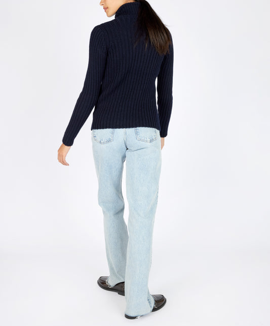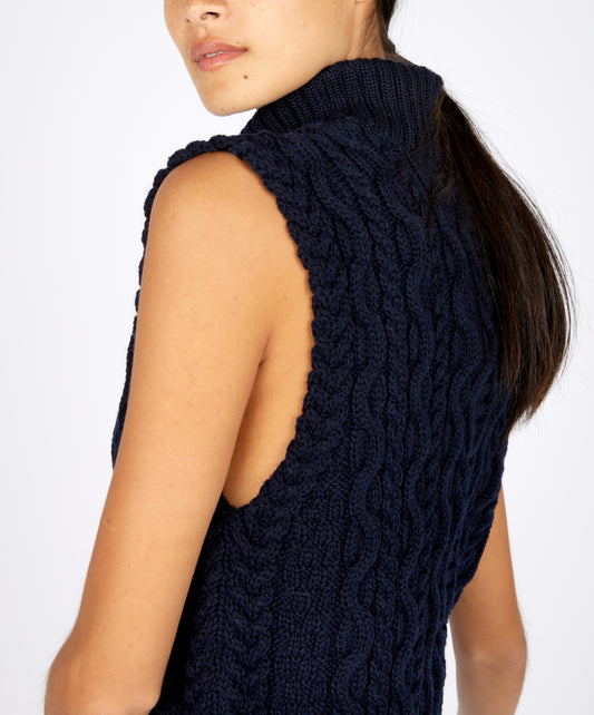 Cuileann Womens Aran Crew Neck Sweater Navy
