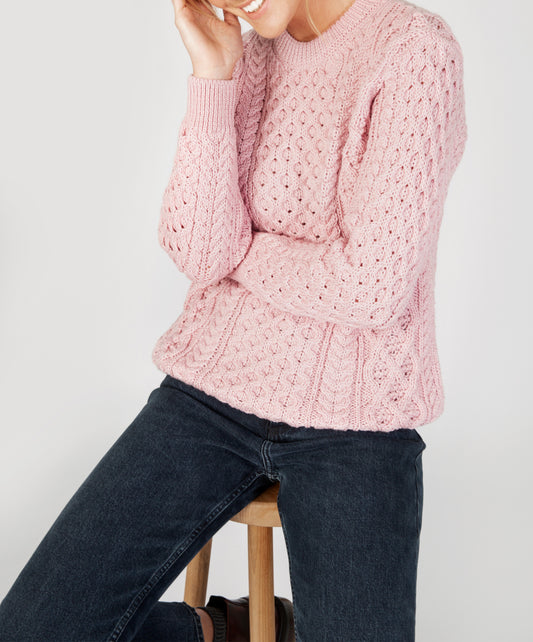 Blasket Honeycomb Stitch Womens Aran Sweater Pale Pink