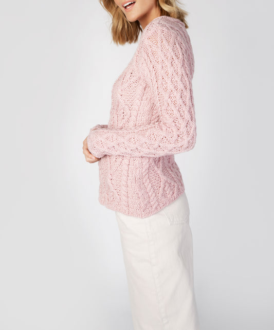 Lambay Lattice Cable Aran Sweater Pale Pink