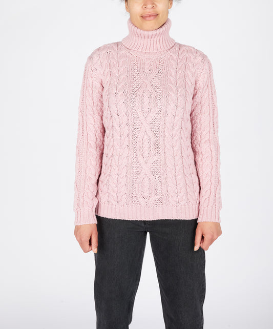 Juniper Aran Polo Neck Pale Pink