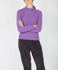 We recommend sizing up for this garment for a more relaxed fit. Orchid is a bright purple colour with flecks of rich aubergine, magenta and lilac. Made from a blend of 95% wool, 5% cashmere for an even softer, more luxurious hand feel.