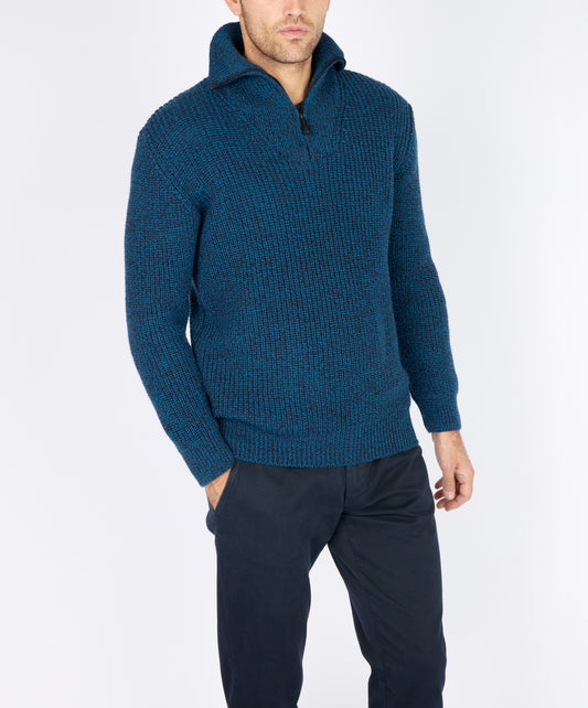 Reefer Ribbed Zip Neck Sweater Petrol Marl