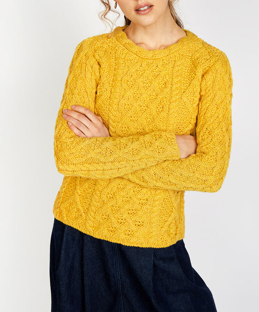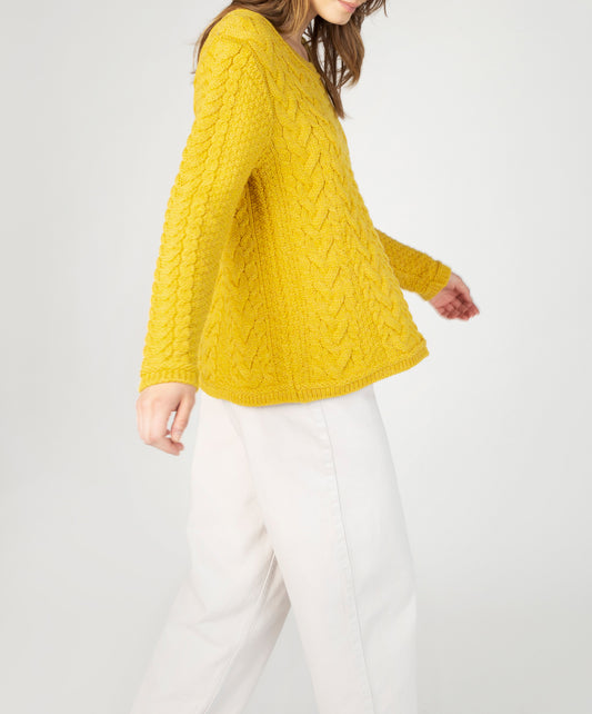 Lambay Lattice Cable Aran Sweater Sunflower