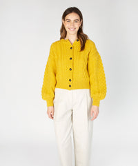 Clover Cropped Aran Cardigan in Sunflower