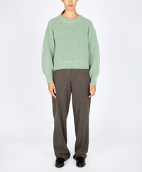 As part of the Embers Collection, the ‘Nuada’ crew neck in fishermans rib is designed for comfort and style with it's contemporary silhouette. Sage marl is a soft pastel two tone marl colour made up of delicate and darker sage green yarns. This 100% Virgin Merino wool style is a generous relaxed fit, the lantern sleeves and fishermans rib stitch give it a modern yet feminine feel.