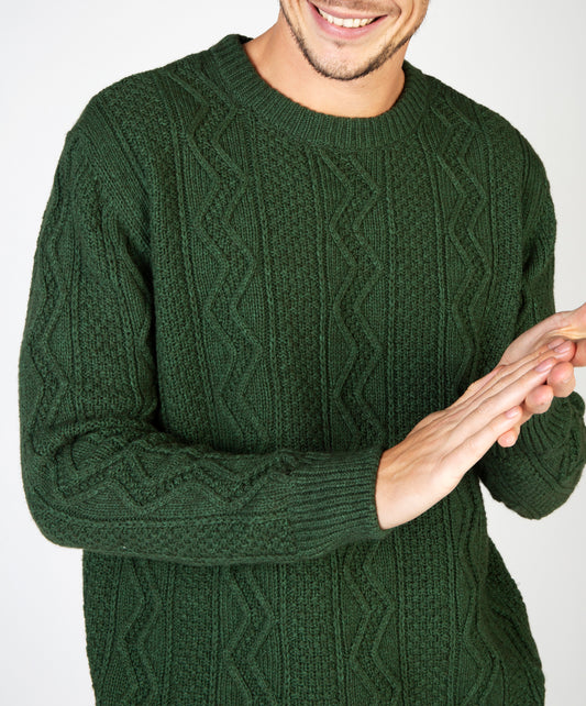 Fearnóg Aran Crew Neck Sweater Evergreen