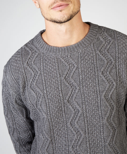 Fearnóg Aran Crew Neck Sweater Steel Marl