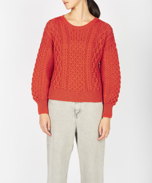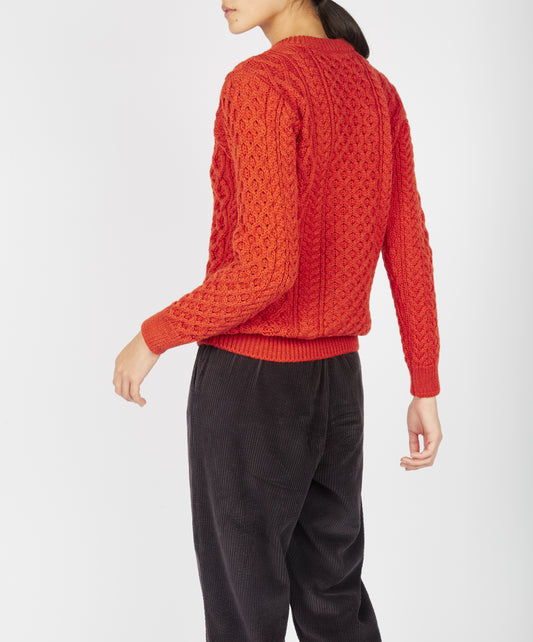 Lambay Lattice Cable Aran Sweater Orange Marl