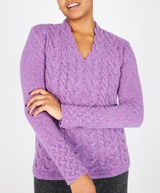 Horseshoe Cable V Neck Orchid