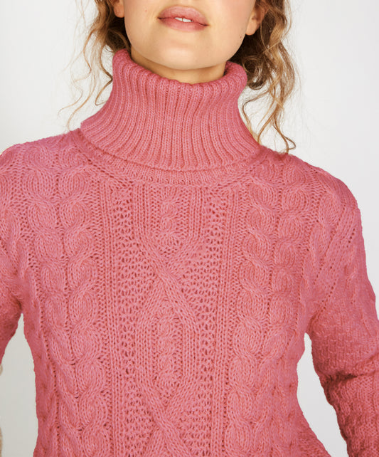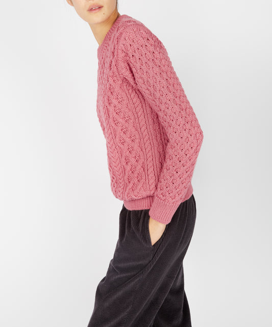 Lambay Lattice Cable Aran Sweater Rosa Pink