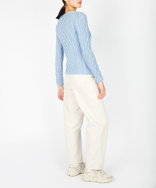 Blasket Honeycomb Stitch Womens Aran Sweater Morning Sky