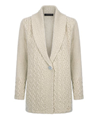 As part of our Archive Collection this blazer style cardigan, with deep shawl collar and one seashell button detailing combined with lightweight cable texture, is perfect for effortless layering. The style of this cardigan is a relaxed fit. Designed and hand finished in Ireland, this cardigan is made from a blend of 95% wool, 5% cashmere for an even softer, more luxurious hand feel.